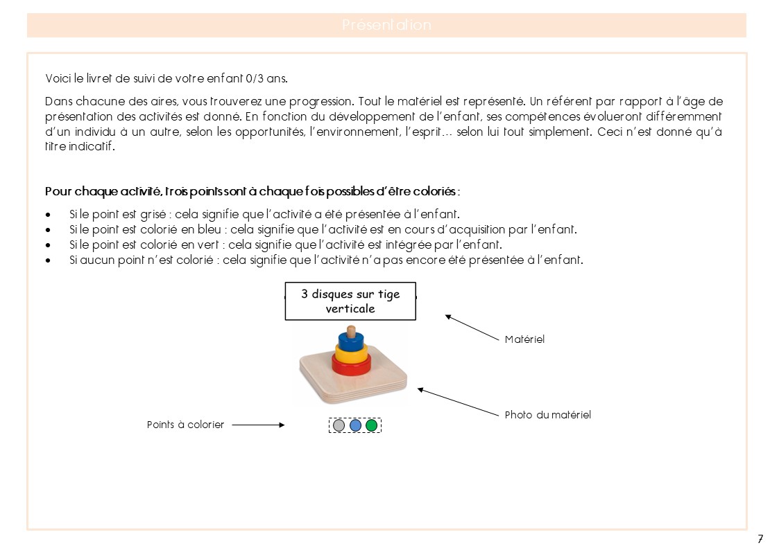 Livret de suivi Montessori 0-3 ans