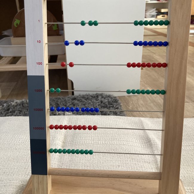Au programme de cette semaine, le grand boulier Montessori.