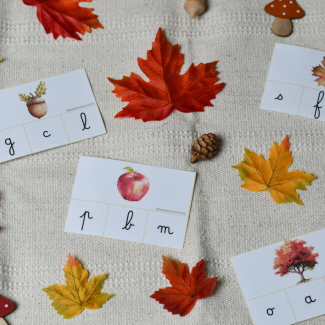 L’automne est là… Voilà de jolies cartes à pince pour travailler la notion de son initial. À l’aide d’épingles à linge, pincer le son initial sur chacune des