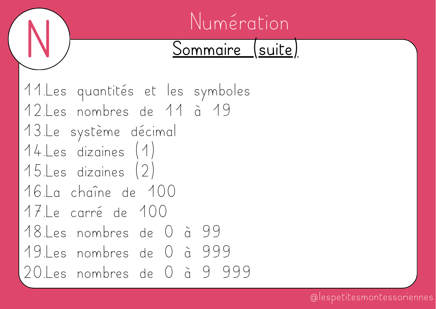 Les nombres de 0 à 99
